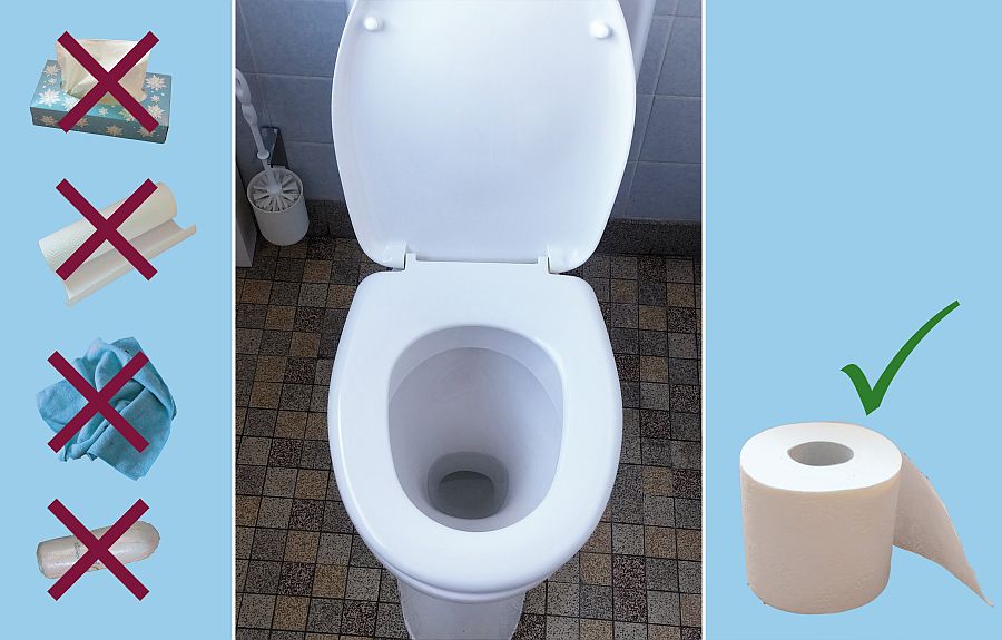 Für eine Entsorgung über die Toilette ist abgesehen von Toilettenpapier nahezu alles tabu. Dazu gehören: Küchentücher, Taschentücher, Feuchttücher, Kosmetiktücher, Hygieneartikel, Putzartikel – und Medikamente natürlich ebenso. Für diese Artikel gibt es nur eine richtige Entsorgung: die Restmülltonne.