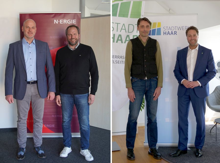 Foto (v.l.n.r.): Norman Villnow, Geschäftsführer N-ERGIE Regenerativ GmbH, Carsten Eckardt, Leiter Erneuerbare Erzeugung N-ERGIE, Rainer Mendel, Geschäftsführer Stadtwerke Haar, Dr. Andreas Bukowski, Erster Bürgermeister Stadt Haar